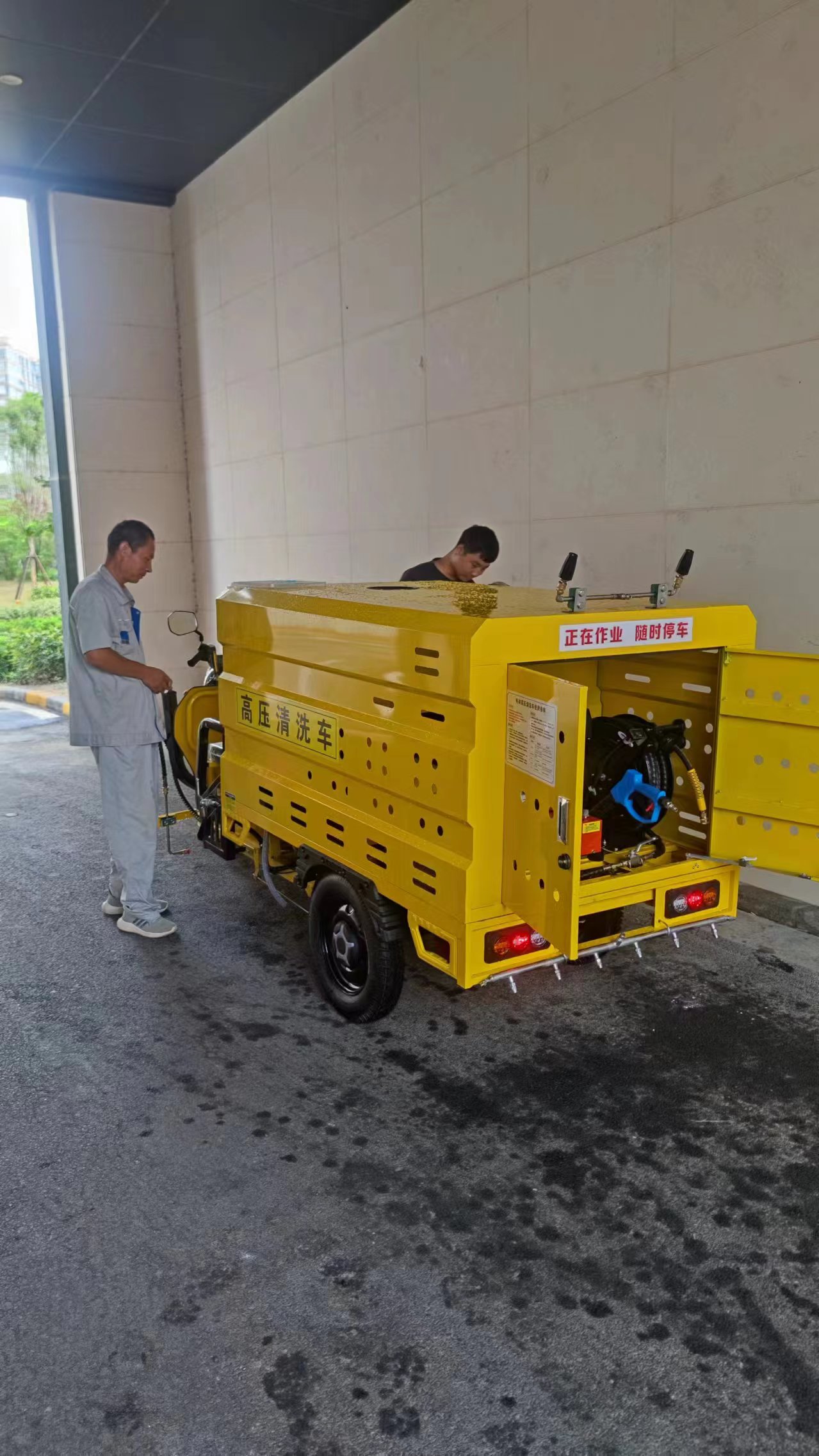 檢查設(shè)備:在使用前,應(yīng)檢查高壓清洗車和水槍是否處于良好狀態(tài),包括檢查電源、電纜、軟管、噴頭等部分是否完好無損。