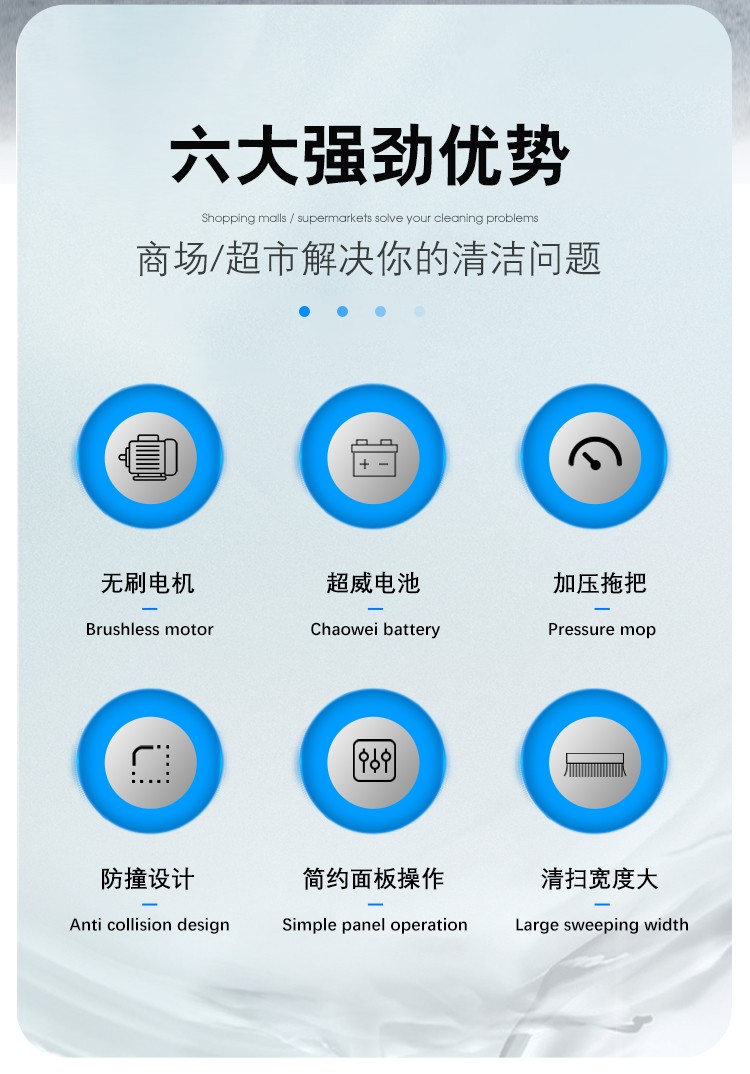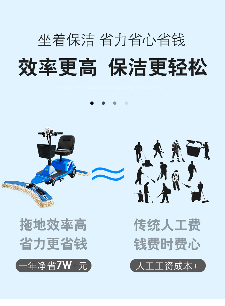 • 鄭州潔仕途JST-3102款三輪駕駛式塵推車適用于商場超市、地下車庫、倉庫車間的地面日常保潔 前置塵推架寬度 900mm 后置塵推架寬度 900mm 電池 4*20AH(超威 轉(zhuǎn)彎半徑 1500mm 爬坡能力 35° 輪胎尺寸 10寸 速度:0-13km 電機(jī)功率 48v500W(無刷 載重量 220kg 凈重:75kg 工作時(shí)間5-6小時(shí) 外觀尺寸 1100*1650*900mm
