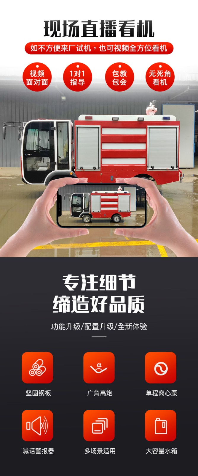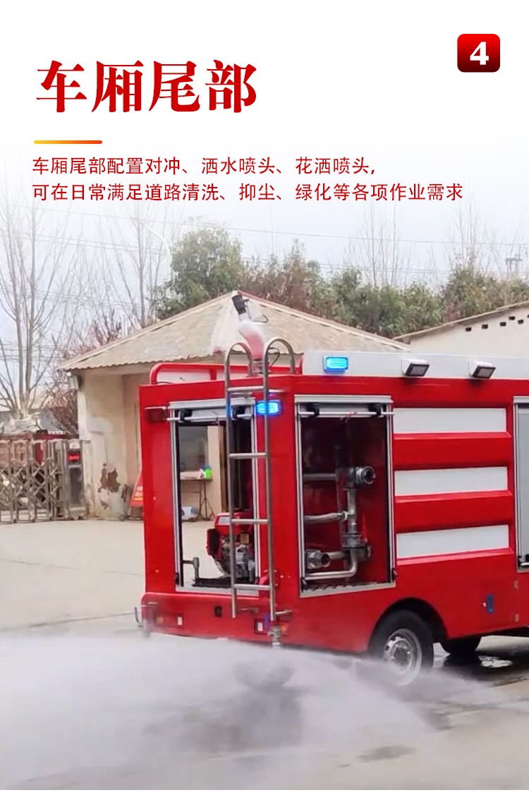 • JST-GXF20S四輪2噸消防巡邏車(chē)(電動(dòng)霧炮)1、車(chē)身采用流線造型,線條流暢,堅(jiān)固耐用,新穎美觀; 2、內(nèi)置消防水泵,配備50m揚(yáng)程高壓水炮,可遠(yuǎn)距離完成滅火; 3、車(chē)廂尾部配置對(duì)沖、灑水噴頭、花灑噴頭,可在日常滿足道路清洗、抑塵、綠化等各項(xiàng)作業(yè)需求 4、整車(chē)配置警報(bào)警示及照射燈,滿足夜間空曠無(wú)照明區(qū)域作業(yè); 5、配備滅火器及滅火工具,靈活滿足各種滅火需要 6、配備子午真空胎,耐磨損,使用壽命長(zhǎng); 7、配備電子助力系統(tǒng),轉(zhuǎn)向更輕便; 8、采用汽車(chē)底盤(pán)結(jié)構(gòu),輪液壓制動(dòng),具有良好的穩(wěn)定性和安全性
