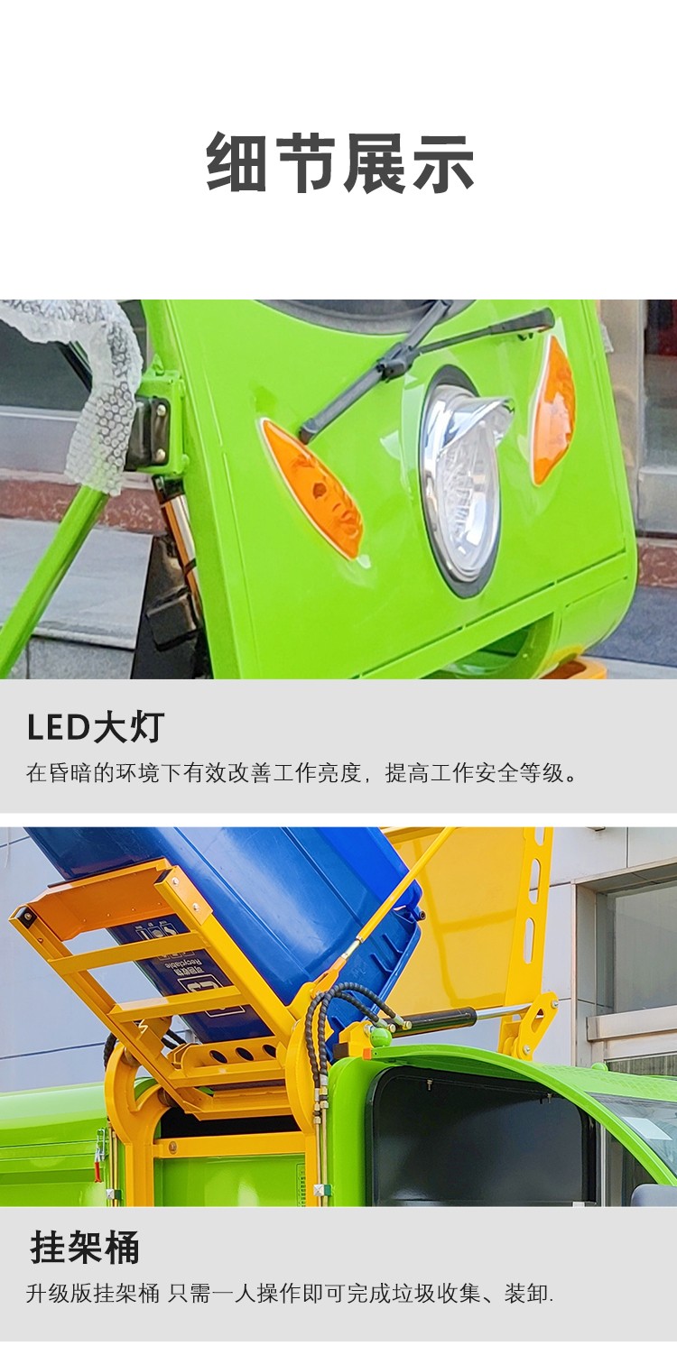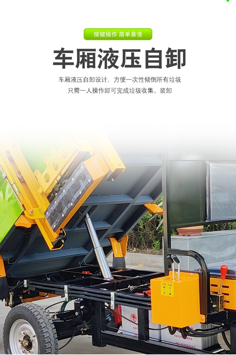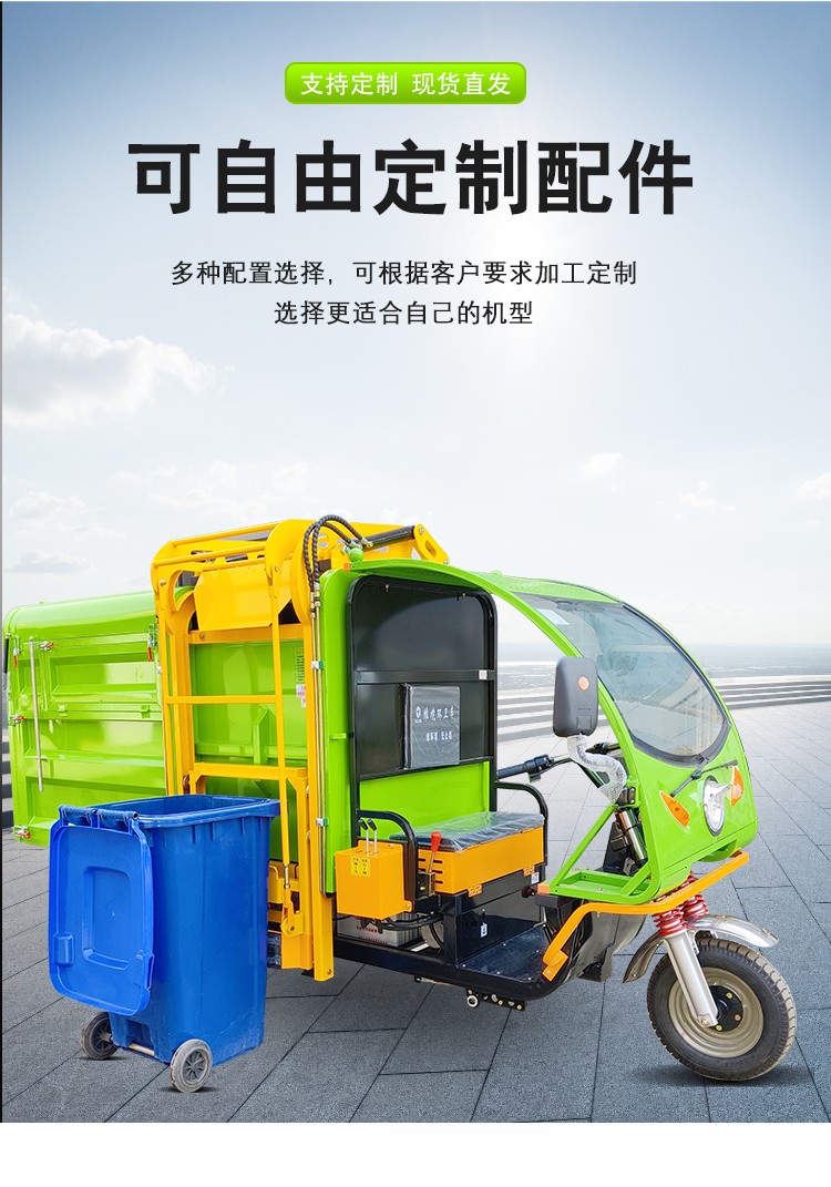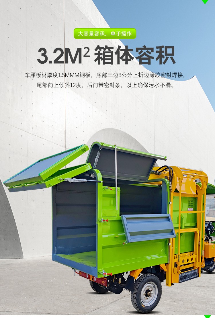 • JST-Q32三輪掛桶垃圾車1、車頭加設(shè)保險杠,既提高了車輛的安全性又加強了車輛的穩(wěn)定性: 2、掛桶機構(gòu)只需一人操作即可完成垃圾收集、裝卸; 3、采用多方位開啟箱體結(jié)構(gòu),可以適應(yīng)于各種環(huán)境下的清運作業(yè)需求