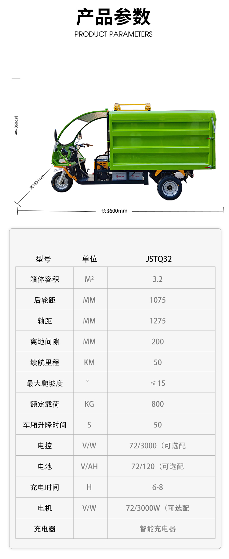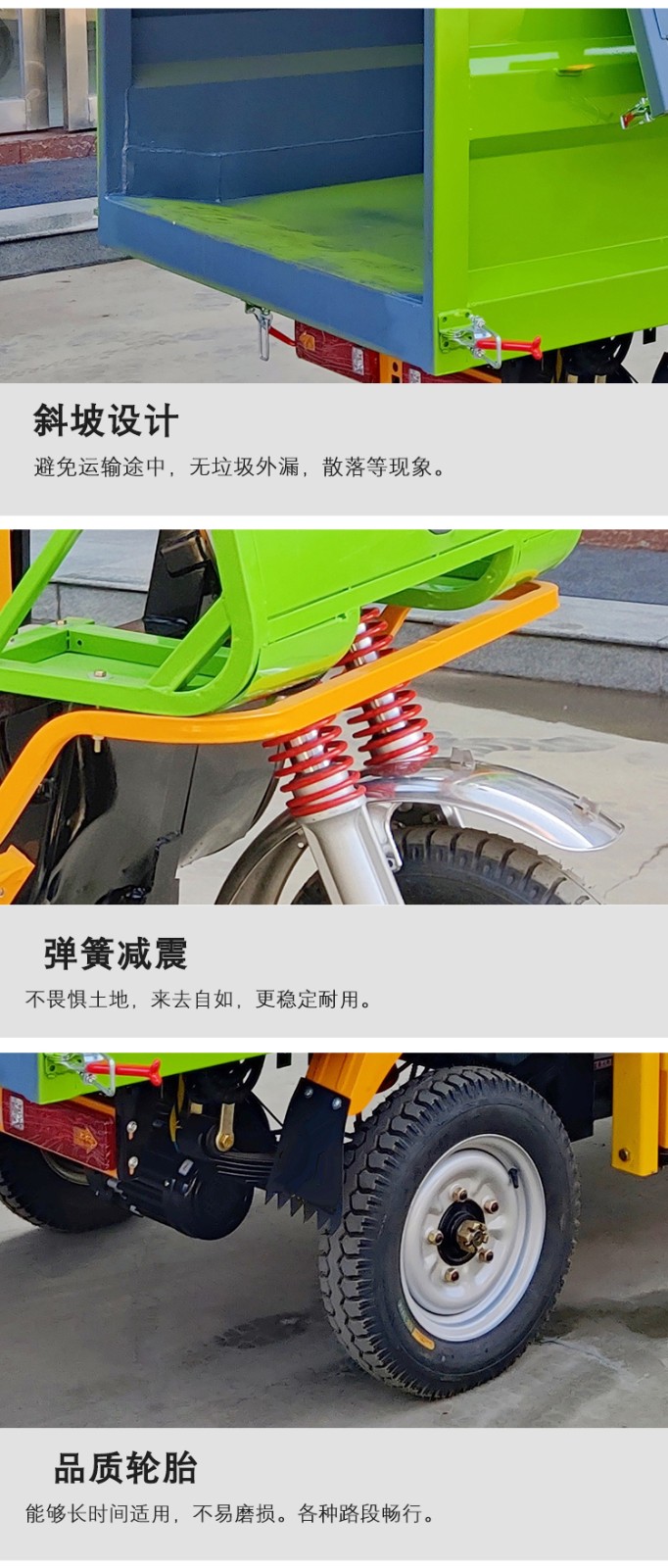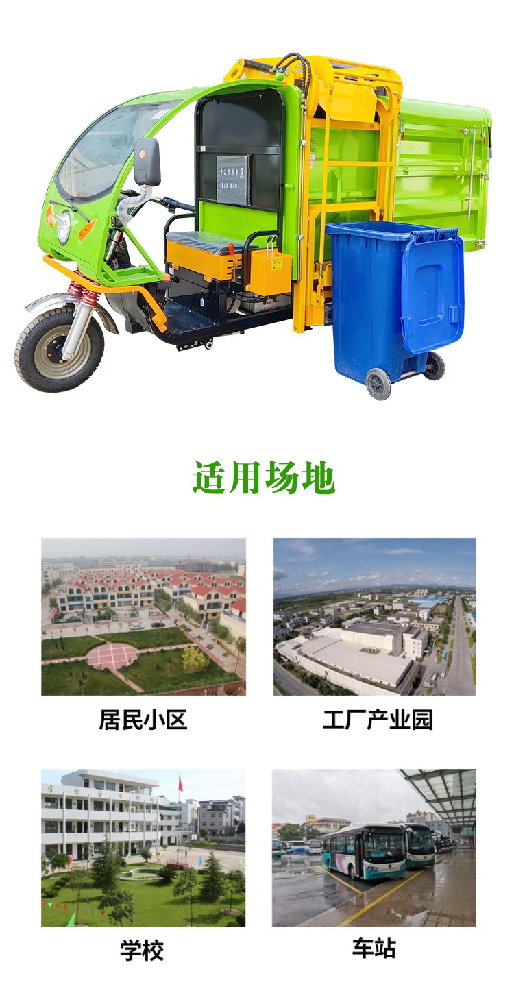 • JST-Q32三輪掛桶垃圾車1、車頭加設(shè)保險杠,既提高了車輛的安全性又加強了車輛的穩(wěn)定性: 2、掛桶機構(gòu)只需一人操作即可完成垃圾收集、裝卸; 3、采用多方位開啟箱體結(jié)構(gòu),可以適應(yīng)于各種環(huán)境下的清運作業(yè)需求