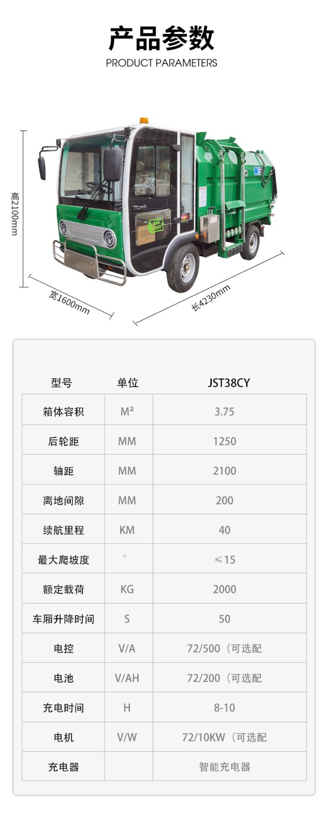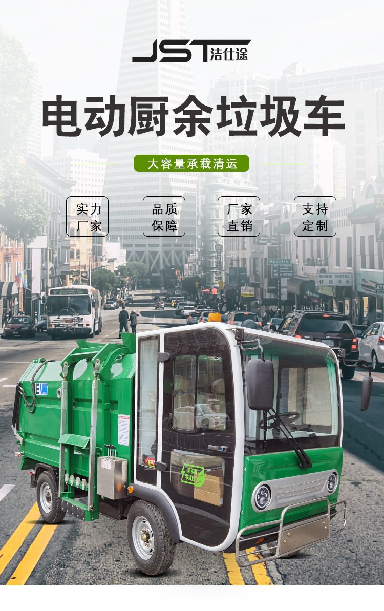 • 潔仕途JST-Q38CY四輪廚余垃圾車1、車身采用流線造型,線條流暢,堅(jiān)固耐用,新穎美觀: 2、側(cè)置掛桶機(jī)構(gòu)只需一人操作即可完成垃圾收集、裝卸; 3、內(nèi)置液壓推板可對垃圾進(jìn)行壓縮,加大垃圾回收量, 4、設(shè)有污水收集箱防止污水溢流 ,配備污水排放閥可定時(shí)排放 4、內(nèi)置固液隔離板,可有效將固液垃圾分離 6、配備鋼絲輪胎,耐磨損,使用壽命長 7、配備電子助力系統(tǒng),轉(zhuǎn)向更輕便 8、采用汽車底盤結(jié)構(gòu),輪液壓制動(dòng),具有良好的穩(wěn)定性和安全性