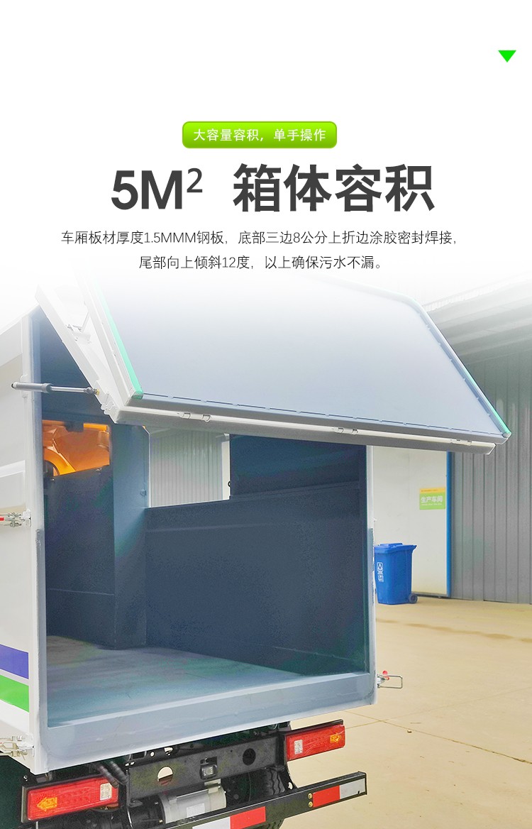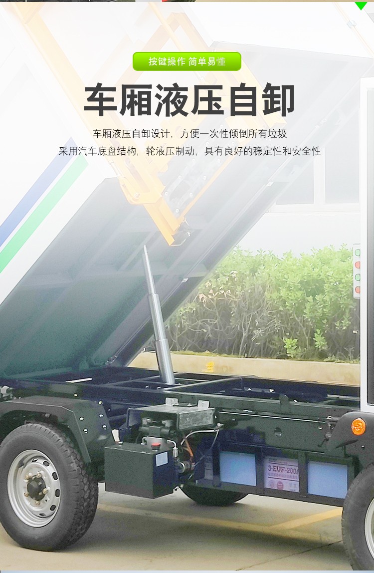 • 潔仕途JST-Q50四輪側(cè)置式掛桶垃圾車1、車身采用流線造型,線條流暢,堅(jiān)固耐用,新穎美觀: 2、掛桶機(jī)構(gòu)只需一人操作即可完成垃圾收集、裝卸; 3、全封閉箱體結(jié)構(gòu),可以適用于各種環(huán)境下的清運(yùn)作業(yè)需求 4、配備子午真空胎,耐磨損,使用壽命長 5、配備電子助力系統(tǒng),轉(zhuǎn)向更輕便 6、采用汽車底盤結(jié)構(gòu),輪液壓制動(dòng),具有良好的穩(wěn)定性和安全性