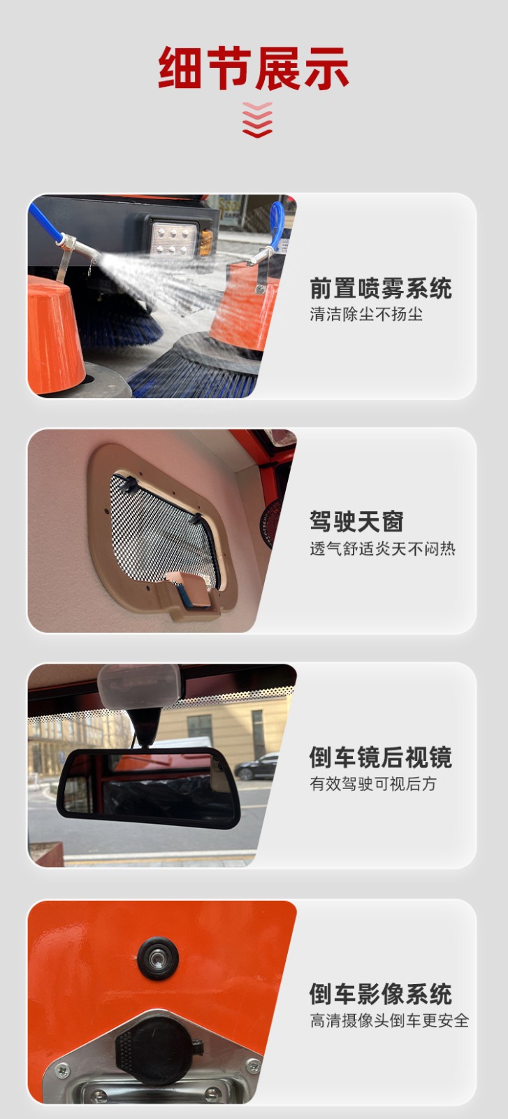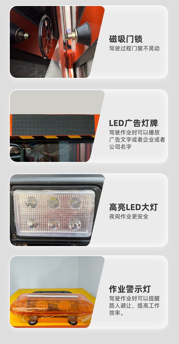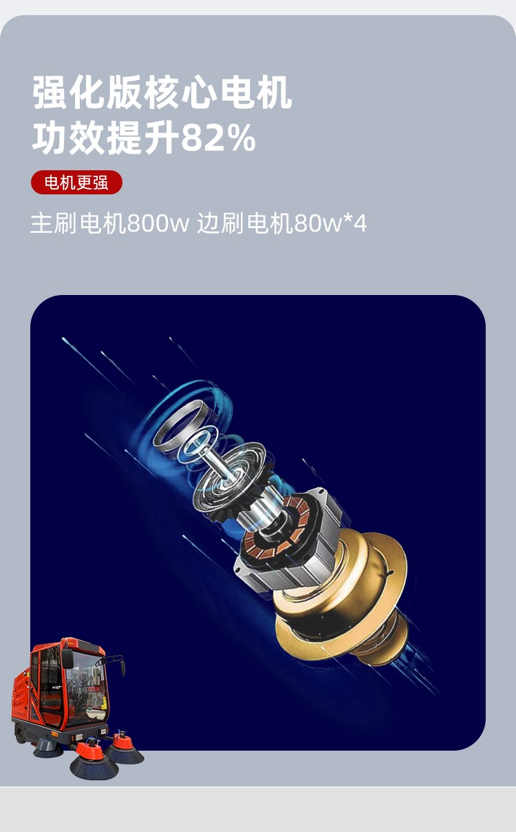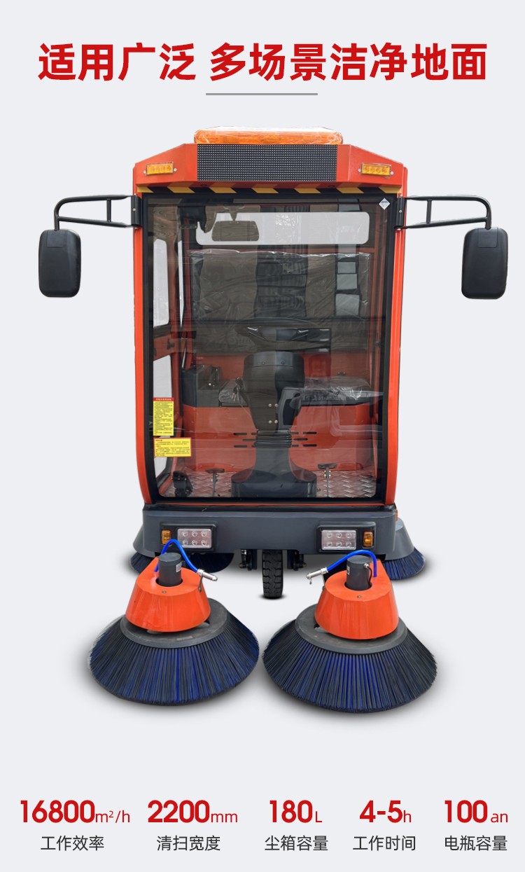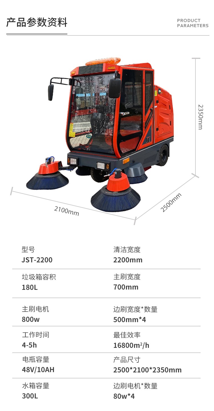 - 適用范圍:工廠車間,市政環(huán)衛(wèi),物業(yè)小區(qū),醫(yī)院學(xué)校 公園景區(qū),車站碼頭 型號:JST-2200 清潔寬度:2200mm 垃圾箱容積:180L 主刷寬度:700mm 主刷電機:800w 邊刷寬度*數(shù)量:500mm*4 工作時間:4-5h 最佳效率:16800m2/h 電瓶容量:48V/10AH 產(chǎn)品尺寸:2500*2100*2350mm 水箱容量:180L 邊刷電機*數(shù)量:80w*4