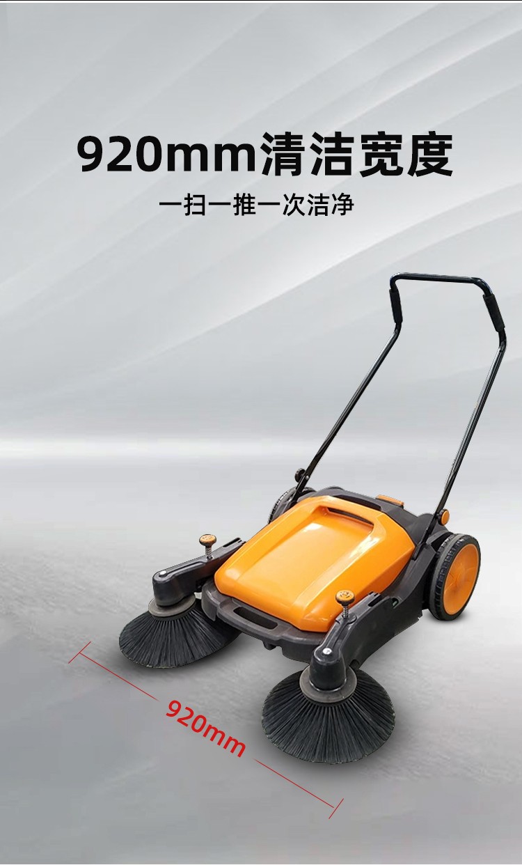 • 潔仕途JST-920F (天窗) 無(wú)助力掃地機(jī) 無(wú)助力手推式掃地機(jī)特別適合于園區(qū)小路,景區(qū),醫(yī)院,工廠,小區(qū)道路等場(chǎng)所的使用,清掃時(shí)無(wú)揚(yáng)塵,無(wú)噪聲,可以在人群中靈活穿梭,結(jié)構(gòu)輕巧,推行輕便,維修簡(jiǎn)單 重量:23.8kg 垃圾桶容量:40L 清掃寬度:920mm 包裝尺寸:760*380*820